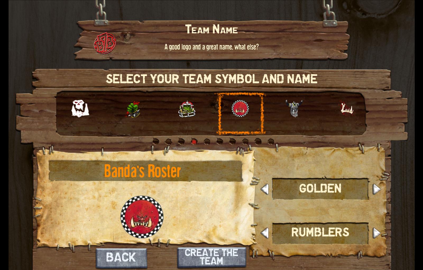 Once your team is created, you must give it a name and logo. If you're lacking inspiration you can choose a combination from the names proposed at the bottom right or you can enter the name of your choice (bottom left).