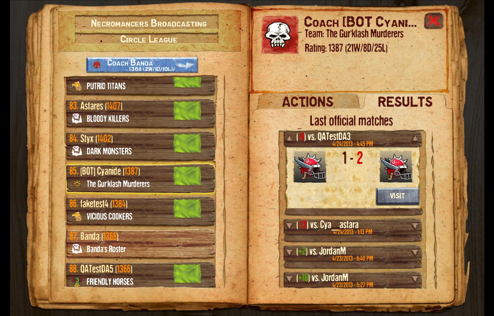 Rankings work as a floating divisional table. That is, you must climb in the rankings in order to see (and thus challenge) teams who are ranked above you (and are not displayed). When you select any team in the ranking list, information on it is displayed on-screen.