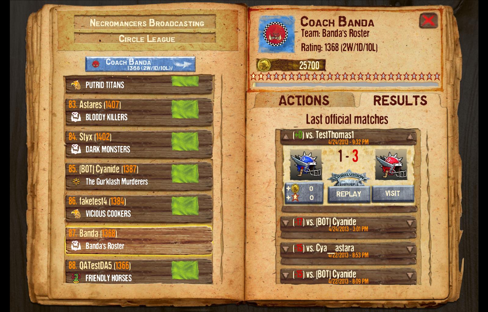 To watch the replay of one of your matches in glorious 3D Cabalvision, simply select the match to view and click on the "Replay" button in the "Results" tab.